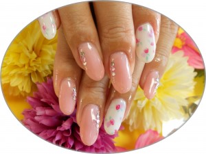 縦置きストーンに小花柄              西船 ネイル CuteSpice