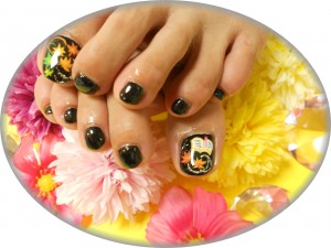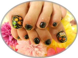 ブラックベースにオレンジ~グリーンの紅葉をペイントで!