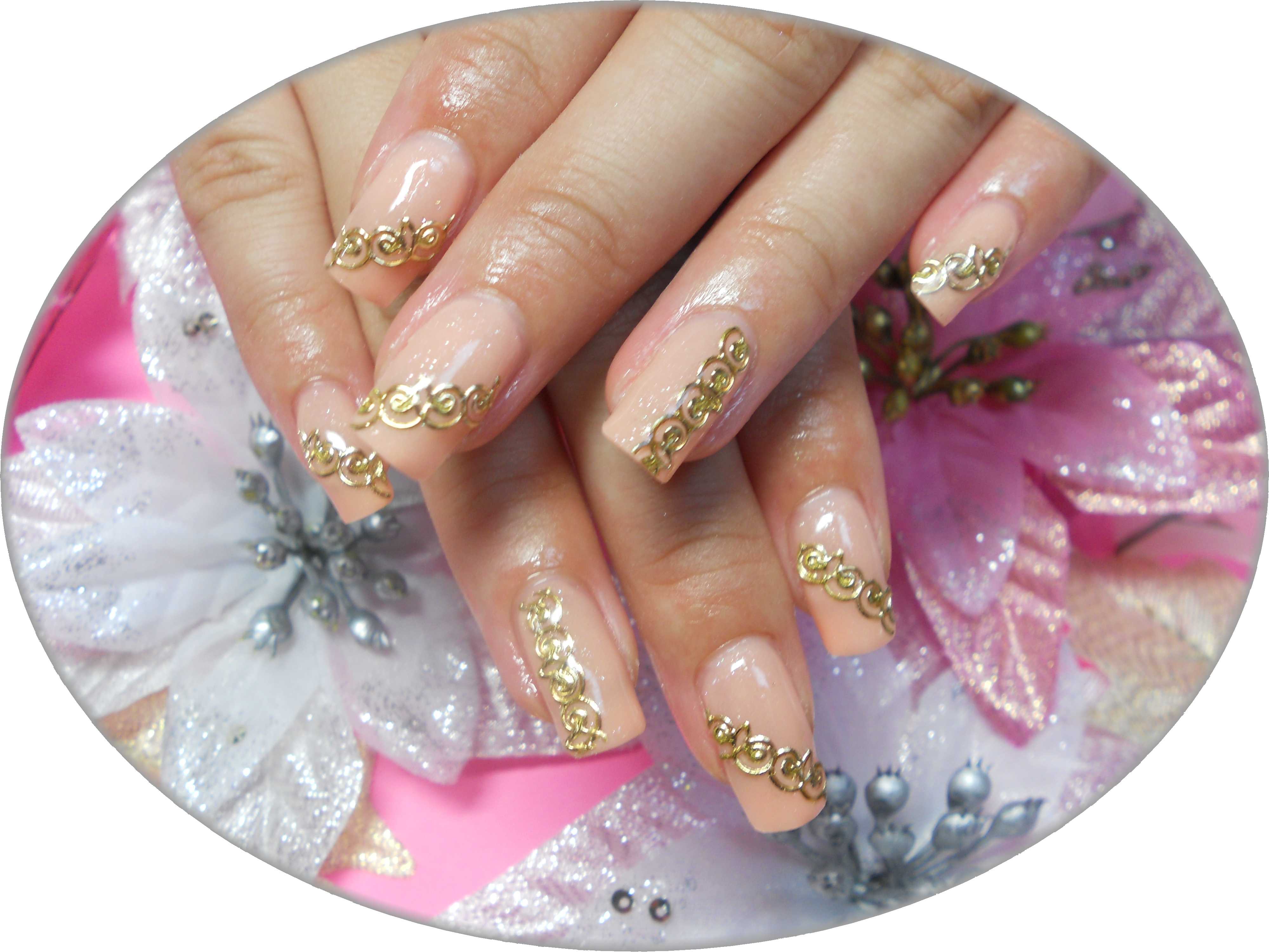 ピンクベージュにロココ調ネイル