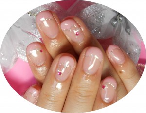 ピンクフレンチ&ハートの形でポイントを作ってあります