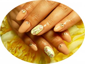 ベージュに1本イエローで春色カラーに!