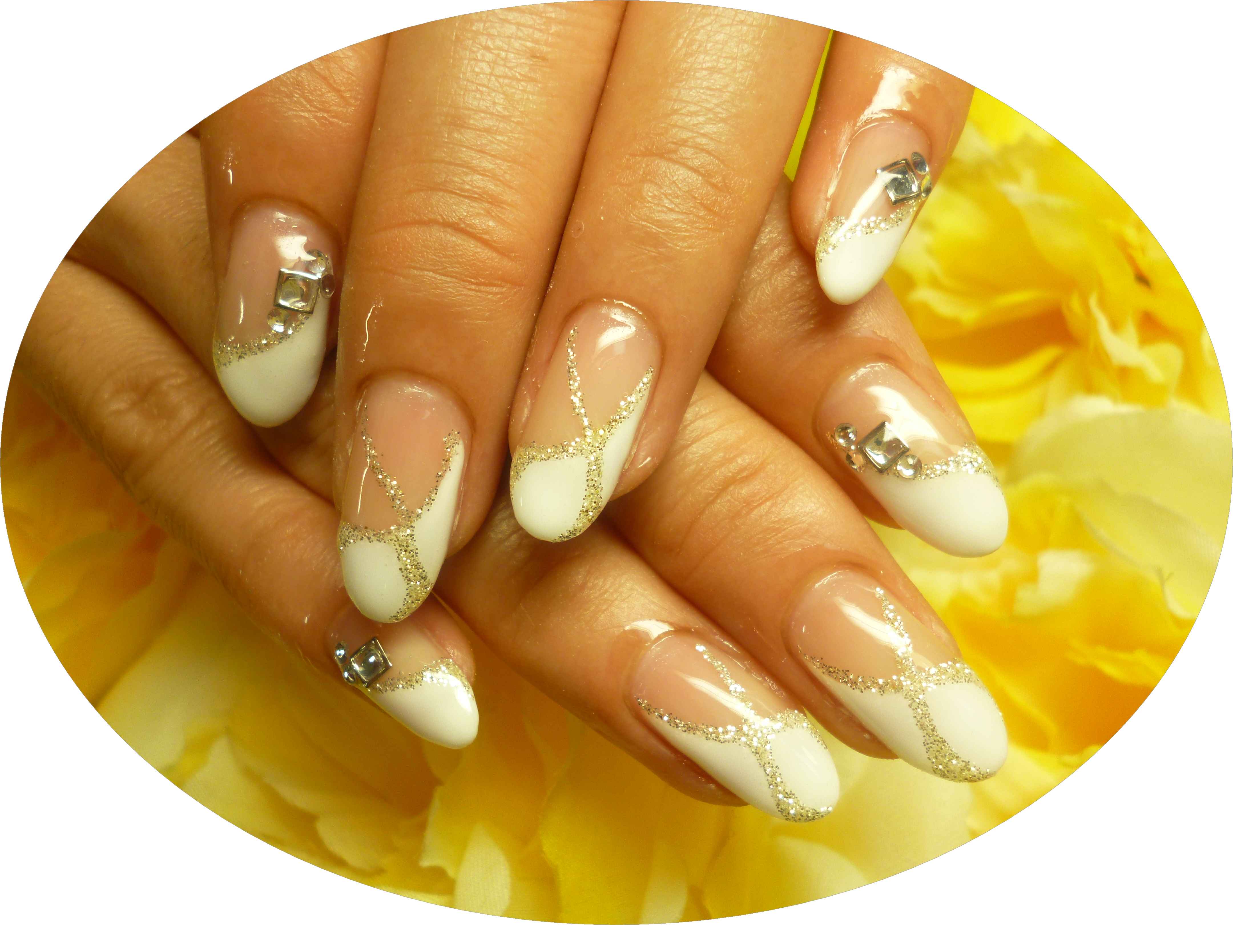 白フレンチに流れるラメライン