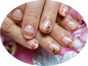 濃いピンク×ベージュをゴールドテープでスタイリッシュに!