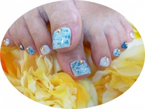 マーブル模様が美しいフットネイル