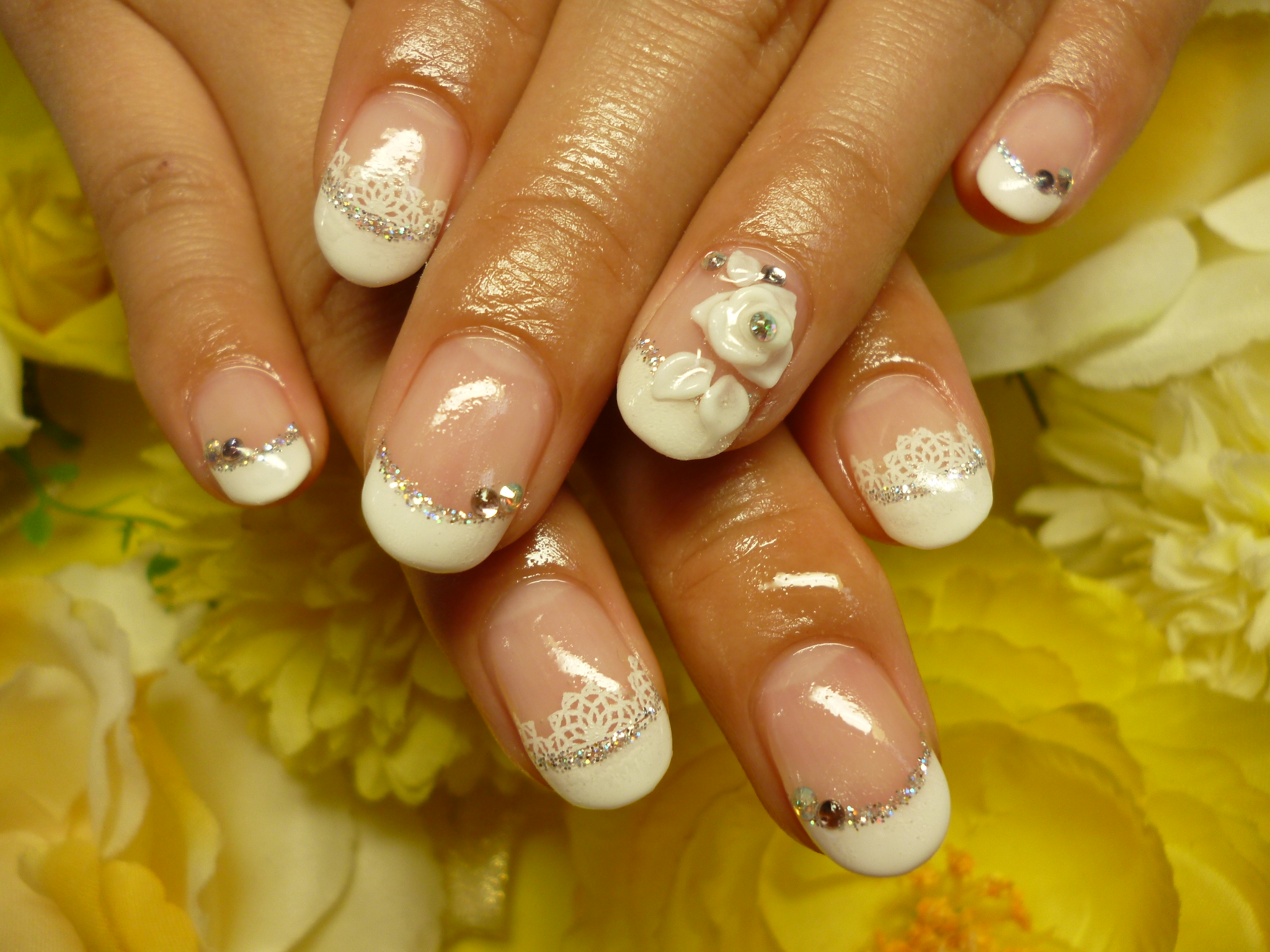 ブライダルネイル3Dがついているので華やかな印象に!