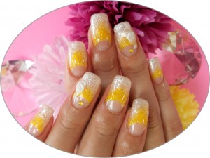 白パールにイエローでエアブラシを逆フレンチに!